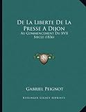 de La Liberte de La Presse a Dijon: Au Commencement Du XVII Siecle (1836) By Gabriel Peignot Rar